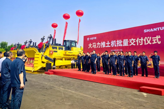 5月17日,山推向中煤平朔集團一次性交付六臺中國最大馬力推土機,中煤平朔集團總經理劉峰帶領專家團隊現場對產品裝配工藝、質量控制、整機狀態等方面進行深入調研和評鑒。在大馬力推土機前,劉峰感慨的說“十一年里,我見證了厚道山推人的堅韌執著、見證了山推對產品的千錘百煉,也見證了山推大馬力推土機的真正崛起!”