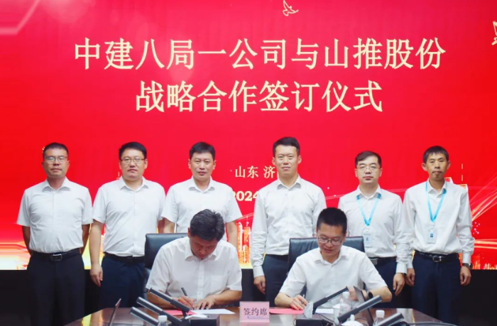8月5日,山推股份與中建八局一公司舉辦戰略合作簽約儀式,雙方就以山推智能裝備機群推動工程建設智慧化轉型升級達成共同發展愿景,簽署了戰略合作協議,并共同成立了智慧低碳裝備聯合研發中心。