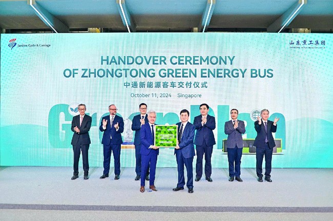 10月11日,“中通新能源客車交付儀式暨N12D雙層電動巴士全球首發”活動在新加坡隆重舉行。中通N12D雙層電動巴士作為中通客車近年來技術創新的結晶,以其獨特的設計、先進的性能和卓越的品質,全新定義中國新能源客車新標桿。中國駐新加坡大使館參贊康伊明,中國國際貿易促進委員會駐新加坡總代表、中資企業(新加坡)協會秘書長付曉輝,新加坡怡和合發集團總裁本杰明等出席活動。
