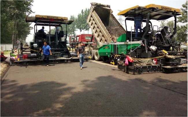 某國道路段水穩施工,攤鋪寬度6m,攤鋪厚度30cm。設備作業效果得到施工方及用戶的高度認可,使得用戶相繼再次購買兩臺該型號設備。