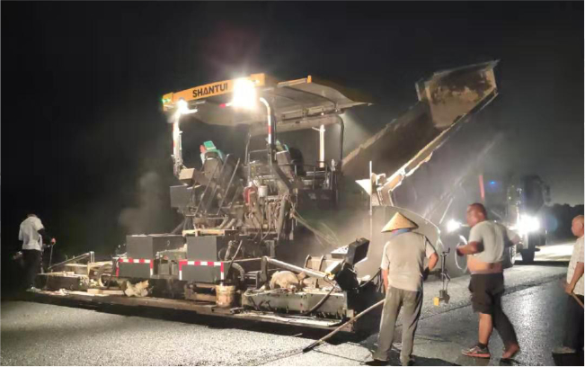 山東省青島黃島區集成路瀝青施工,攤鋪厚度為8cm,攤鋪寬度為6m,該設備不分黑白連夜施工,性能可靠,無高差,無離析,平整度好,作業質量優,獲得用戶的高度稱贊。