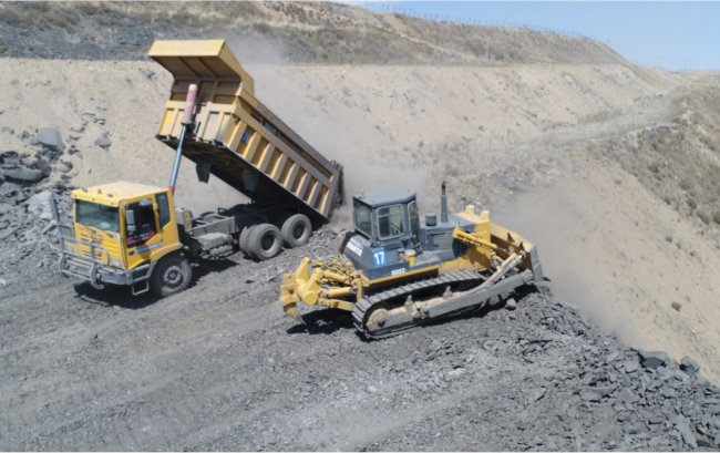 國內西南某金屬礦排土場施工機群作業,山推推土機以動力足、質量好、效率高、故障率低贏得該礦山青睞,多次購買山推推土機。目前,該排土場使用多臺多種系列山推機型。