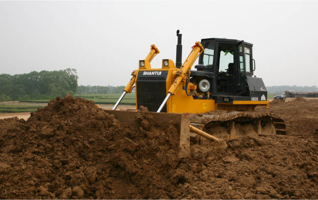 SD22S推土機配置重發發動機,采用濕地加長臺車,船型履帶板,加寬直傾鏟接地比壓小,適合泥塘、沼澤地等工況。