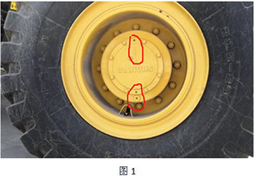 3、 將塞堵拆下后(圖1),將廢油用備用桶收集后妥善處理,將塞堵上的異物清理干凈。放油完畢后轉動輪胎,將箭頭方向指示朝下。